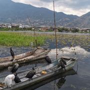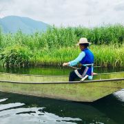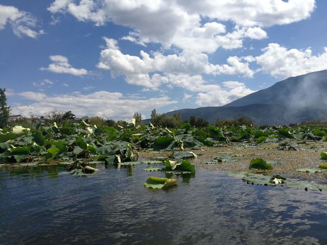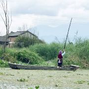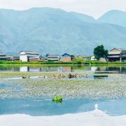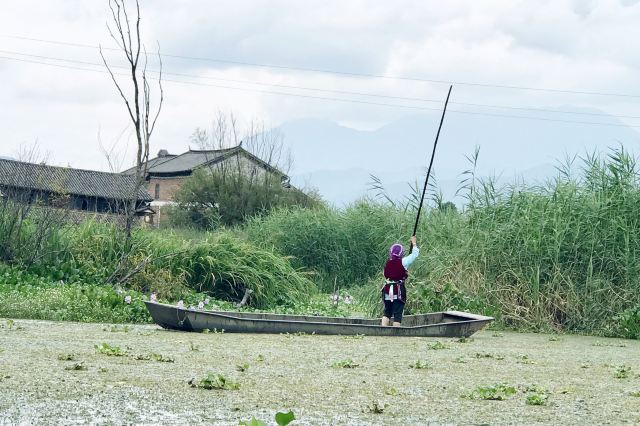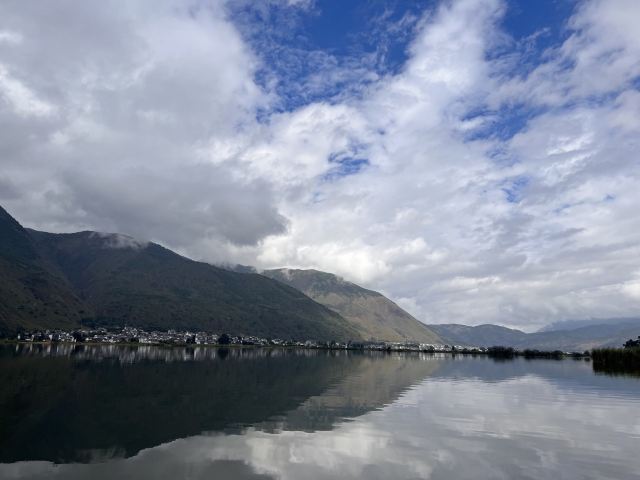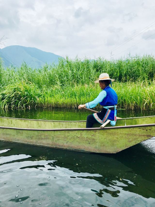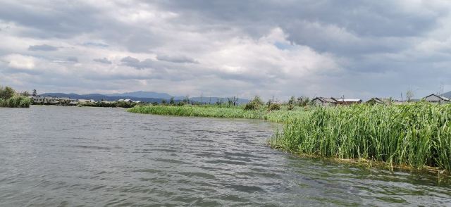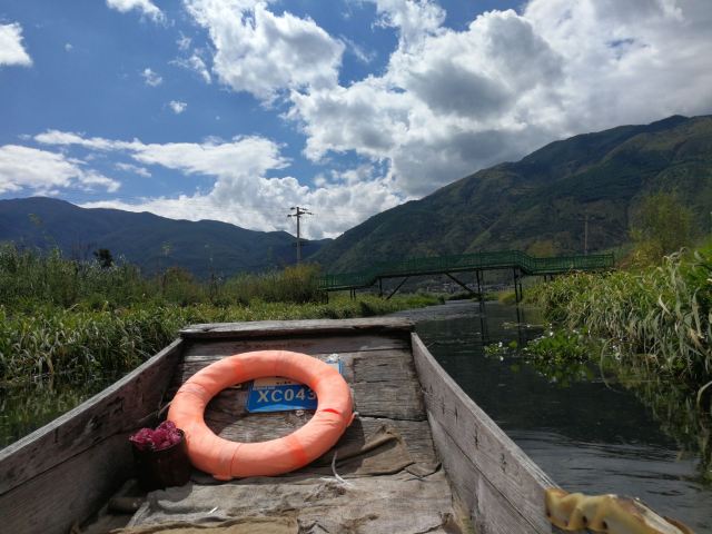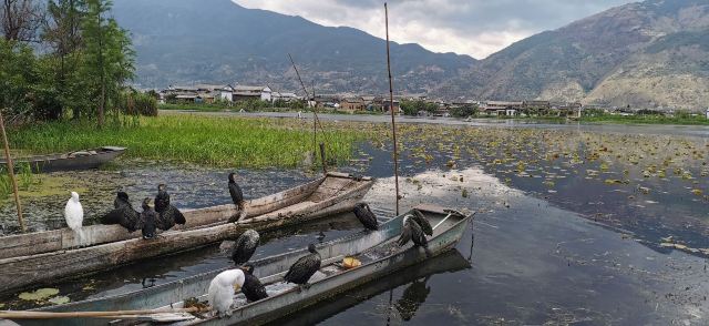 乘船于大理西湖上,欣赏周围清新风景,芦苇轻轻飘扬,不时有白鹭飞来飞去,十分美好。乘船时还能听到船工歌唱的白族小调。