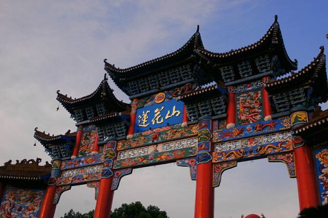 莲花山峰峦叠翠,楼阁嵯峨,万木葱笼,山水相映,苍翠欲滴,已开发面积3万平方米,总体设计以白猿山山势架构为基础,依山造势,气势宏大、结构独特。