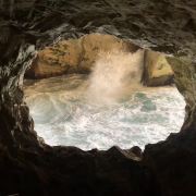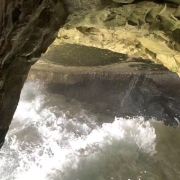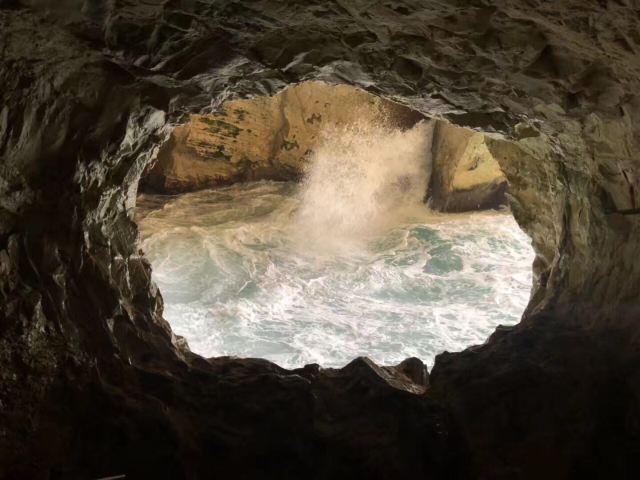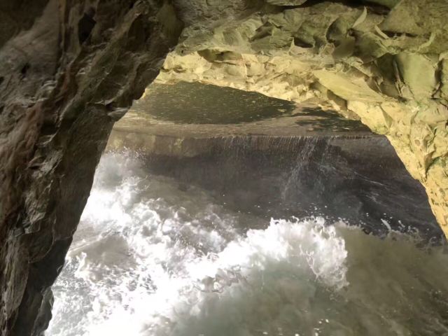 这是个美丽又壮观的洞穴,它是一个悬在空中的巨大岩石拱门,下面是一个巨大的悬崖。