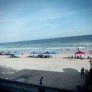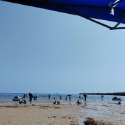 4分 满意说是人少,我不信!2号去的,下午4点到,下着大雨,不说人从众,但是人一点都不少!!!,沙滩上都是人,几百辆车子,车位都不好走,大部分都是本地或者附近的!沙子还好,带小孩玩很稀饭,浪大,就在旁边泡泡水或者踩踩沙,帐篷120一顶,砍价80,餐厅海鲜没问