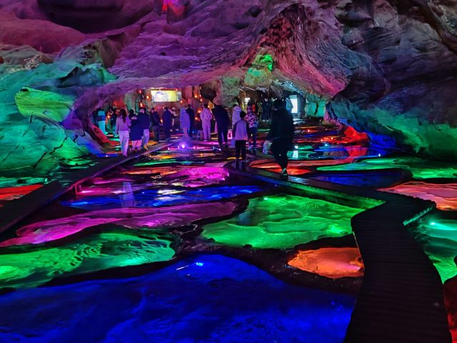 洞天世界,大自然的鬼斧神工,使钟乳奇石奇形怪状、变幻万端,灯光照耀使洞内显得神秘,富有诗意,移步换景、美轮美奂适合各种拍拍拍。