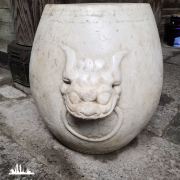 汉白玉座稀世宝, 石刻木雕妙绝伦。