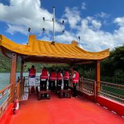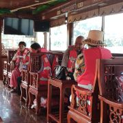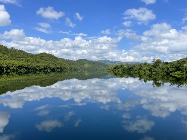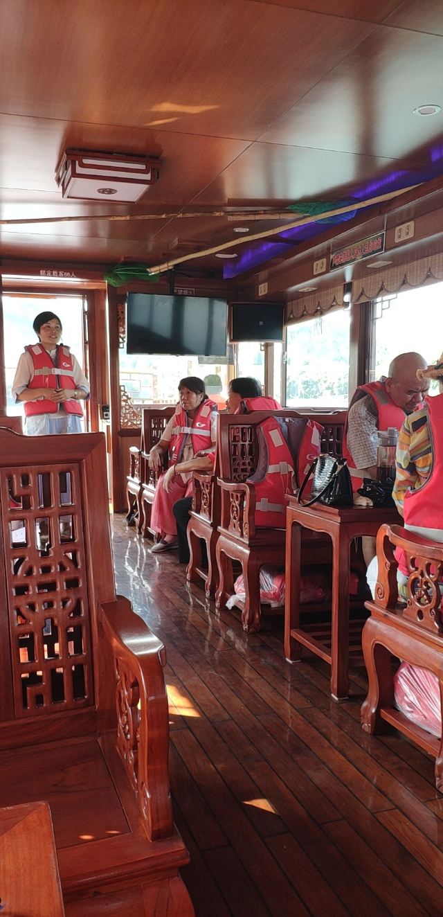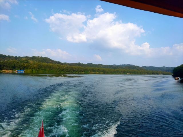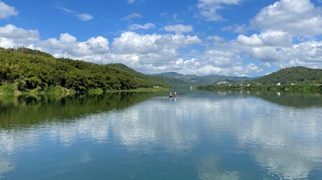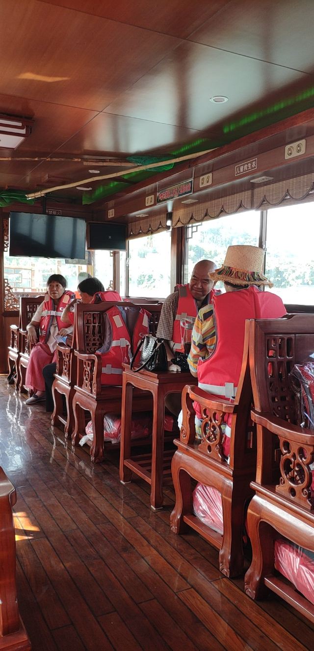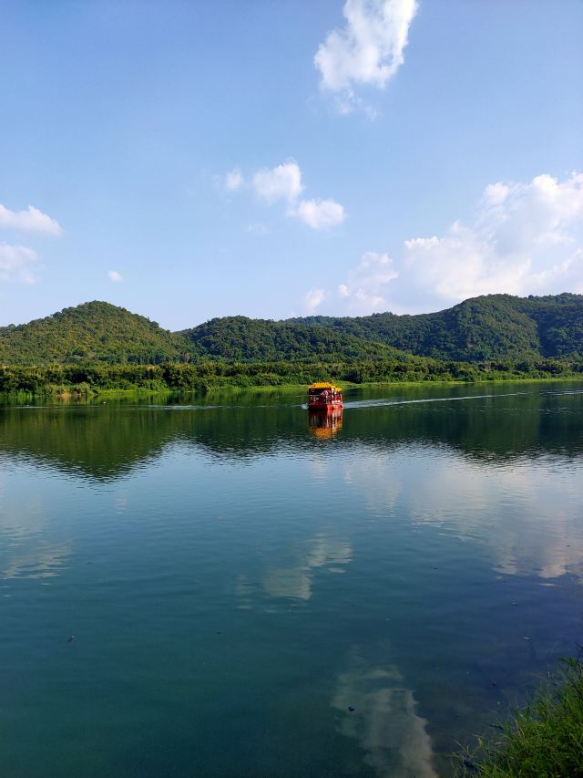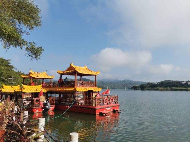 4分 满意贺江画廊非常美,水很清,很干净,比漓江、肇庆的水还美,来玩的人却很少,即使国庆节人也不多。封开的景点里,除了贺江画廊,其它都是收费景点。但是反而是免费的贺江画廊才是最美的。如果不坐船,可以沿着画廊(也就是贺江畔)的各个打卡点边走边拍,沿途有很多观景台,不同区域也有不同区域的美和特点,比如还有稻田,竹荪种植基地等等。贺江画廊坐船是收费的,看上去有点贵,但是强烈建议一定要体验一下。我们坐的船是两层的,楼下有空调,船舱宽阔,干净舒适,楼上半露天,但有亭子遮头(图2),也不晒,微风徐徐,非常舒适。比很多地方的游船都更赞。无风的时候,江面就像面镜子,仿佛云在水中游,人在画里走。120元=全程约1.5小时船程,非常美,是岸上或高处无法体验到的美,强烈推荐一定要体验。附图全都的手机拍,无滤镜。唯一吐槽的是,到了目的地后,虽然可以坐船票里已含费用的大巴回到起始点,但是车的班次非常少,并没有和船的班次匹配上。我们的船11:40在终点靠岸,但要12:30才有车回起点。也就是说要在终点等差不多一个钟头。好在终点走几百米有个小镇(很本土的小镇,不是游客体验的那种)可以吃饭,我们匆匆吃了碗粉又走回坐车点等车(如果吃饭又怕上菜慢,错过了下一班车要再等一个多小时)。滴滴在这边没车,不等车也没别的选择。虽然坐船要1.5小时,但其实坐车回起点只要20分钟,可能因为路更直,而船则需要绕弯弯。其实回程车的班次应该根据船靠岸的时间来调整,如果能车能无缝链接,我就给坐船体验打10分(满分),但就因为回程等车太久,我只能打8分了。但回程的车和坐的船好像不是一家公司的,所以船公司也比较无奈吧。如果当地政府真的想好好利用当地资源发展旅游业,就应该去协调一下各方,改善游客体验咯。封开真的是个好地方,千万别浪费了这么美丽的贺江资源,好好改善一下游客的体验,才能吸引更多的人来玩!