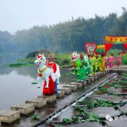 贺江碧道画廊景区面积43平方公里,是实施“乡村振兴”工程建成的一条独具岭南特色乡村风貌和远溯秦汉人文历史遗址的美丽廊带。潇贺古道和茶船古道衍生的岭南首府、粤语发源地、广府文化发祥地、水陆商贸兴盛等深厚历史文化底蕴在此呈现。“以路为廊、以水为链”,景区以贺江为主轴,全程25公里,水陆兼并,贺江碧道串起了竹洲半岛、台洞湿地、励志半岛、大洲半岛等区域,恬静自然的田园风光和古民居、古码头、博物馆构成了一条如诗如画的艺术长廊。