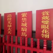进入重光门是官衙,设三堂六厅,外辖和勾、百户、孔庭族长及曲阜县衙四个衙门。其中大堂是当年衍圣公宣读圣旨、接见官员、审理重大案件,以及节日、寿辰举行仪式的地方,如今可以看到里面陈列着的正一品爵位使用的公案桌、仪仗等物品。