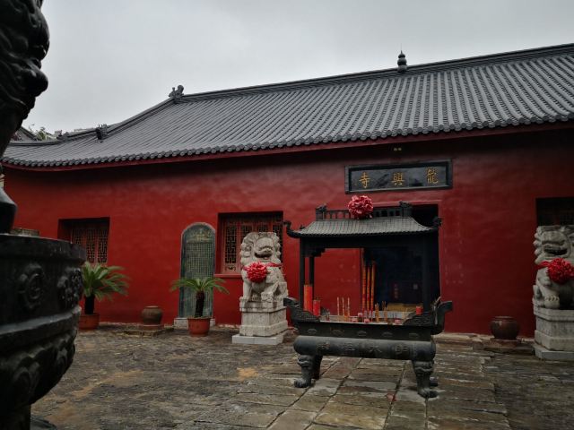 龙兴寺经过600余年的风雨沧桑,大部分建筑遭到不同程度的破坏。但察其遗址、布局仍森然壮观,尚存的部分文物和建筑构件足可以证实其当年的气势、规格和规模。殿外四口硕大的铜锅,传为寺僧做饭所用,不难想象当年寺僧之众;殿前东西两侧各有古槐,枝桠纵横,为古寺增辉;殿内陈列有明代铜鼓和铜铸幽鸣钟,为皇家寺院的见证。
