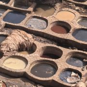 菲斯古城里颇具“色彩”的景点就是乔拉制革厂。在迂回曲折的小巷迷宫中,远远的就能闻到一股刺鼻的味道,据说非斯是世界上极少仍保持传统皮具染色方法的地区之一,当地人用驴子送来皮革,再将它们放入一格格染槽中,保留着传统搓揉及风干的古老方法,让天然植物的颜色在皮革上美丽地呈现出来。这里的皮革制品在北非之所以享有盛誉,得益于每道工序依旧严格地按照这种传统工艺进行着。