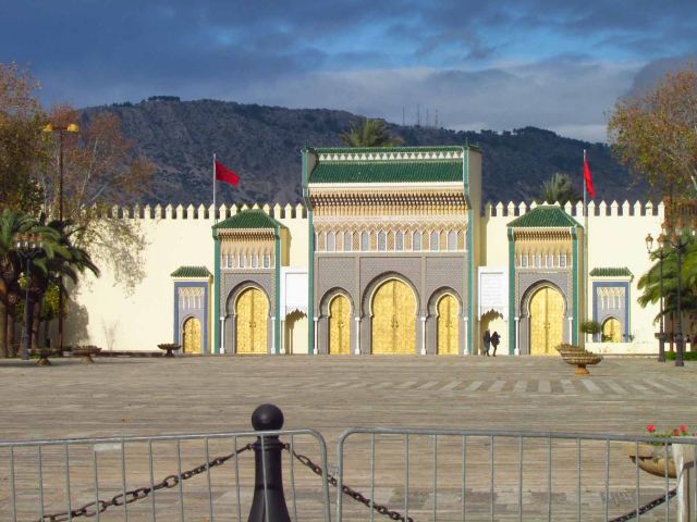 4分 满意摩洛哥国王在非斯的王宫可以追溯到公元 1276 年马里尼德王朝的皇家城堡的基础。 今天的大部分宫殿都可以追溯到 17 至 20 世纪。 宫殿最公开可见的部分是华丽的 20 世纪大门。