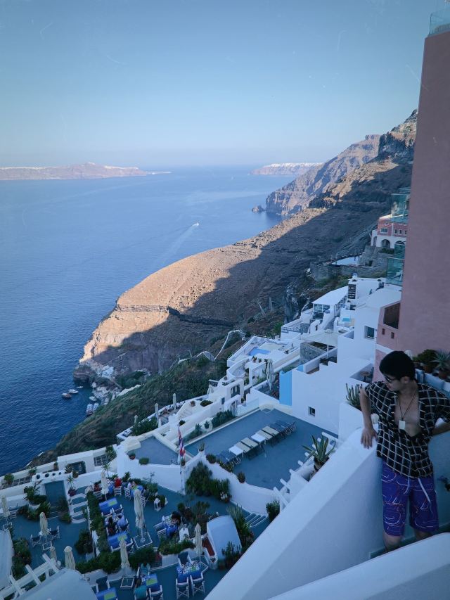 早晨的闲暇时光,你可以在这里俯瞰爱琴海、眺望对面的火山岛、吹吹海风,晒晒阳光浴或在步道上随意的走走逛逛,拍拍照片。傍晚时分可以坐在靠近悬崖边的餐厅里边品尝美食边欣赏日落。到了晚上这里更是灯火通明,你可以去酒吧听听歌,点上一杯酒放松一下。