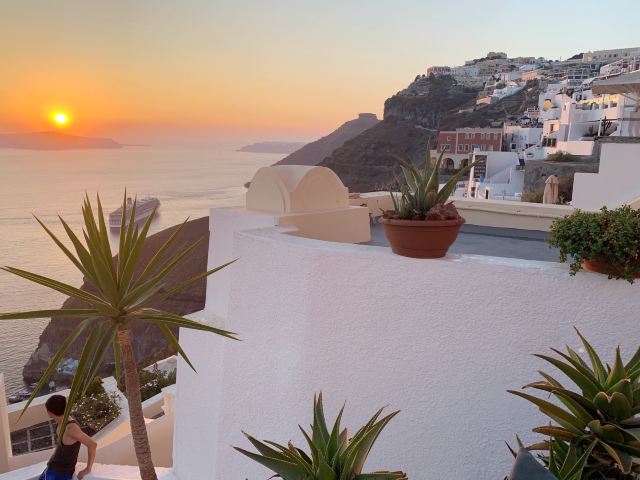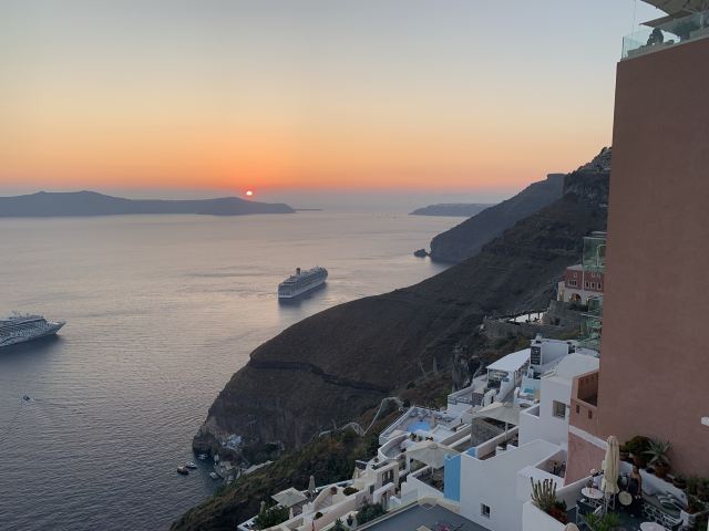 4分 满意也有悬崖酒店景色,但是比伊亚小镇景观差,各种小店很多,商业气息浓厚,路很窄,如果碰到游轮旅客,走路得排队。