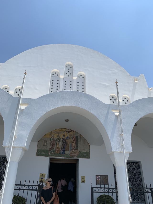 小镇依山靠海 蓝顶白墙 也算是圣托里尼的代表之一