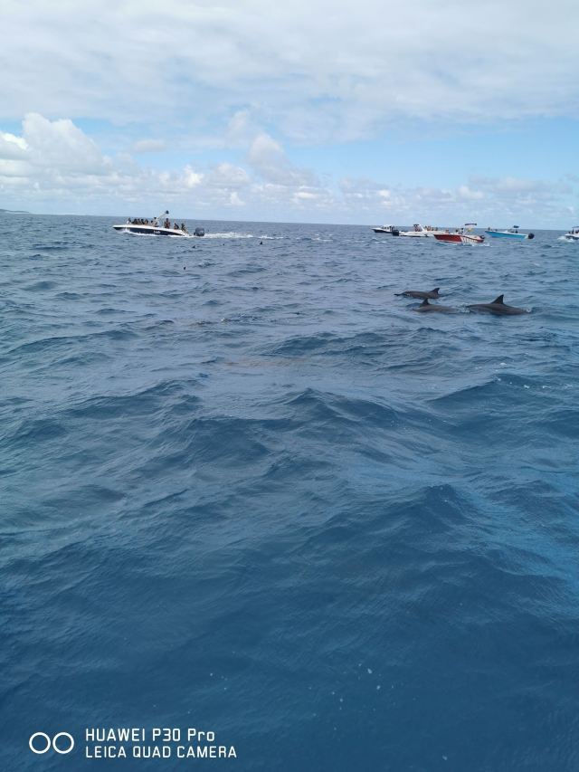两个半小时的出海中,可以不断看到有海豚群主动游上前来,与潜客互动,它们一点也不惧怕人类,非常友善。参观完海豚,快艇会带你回岸上,或前往下一处景点。