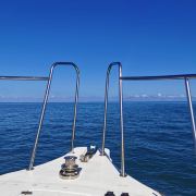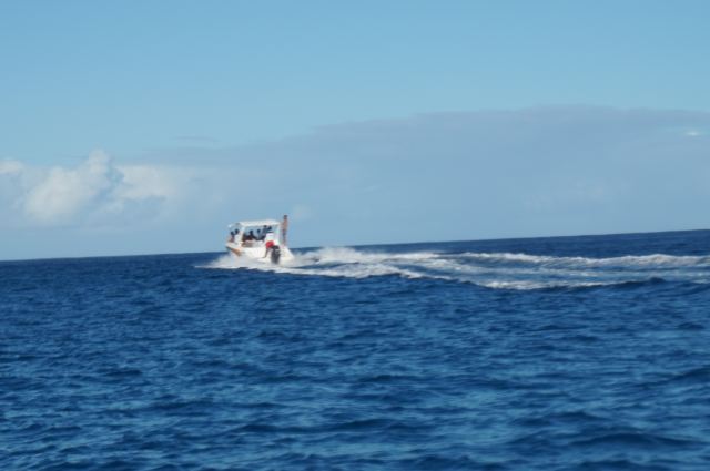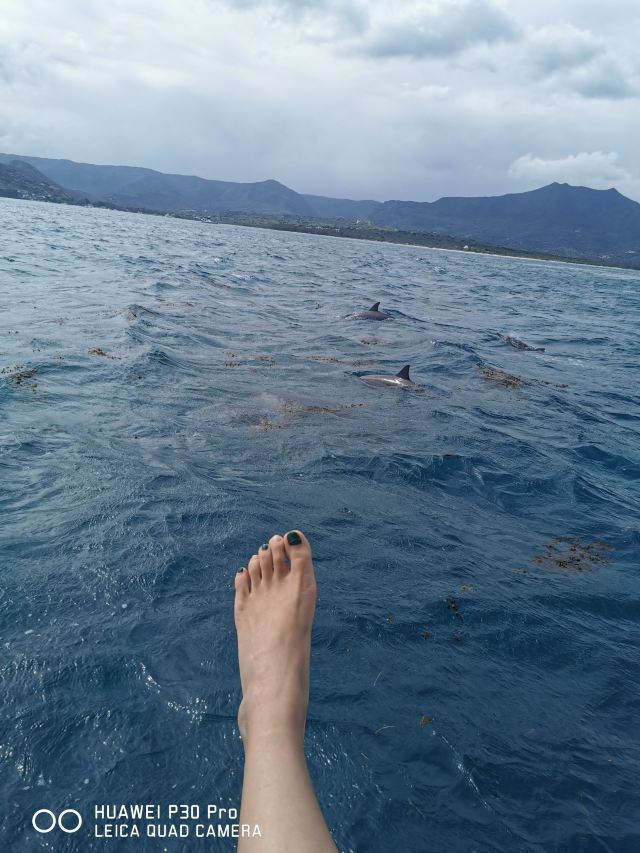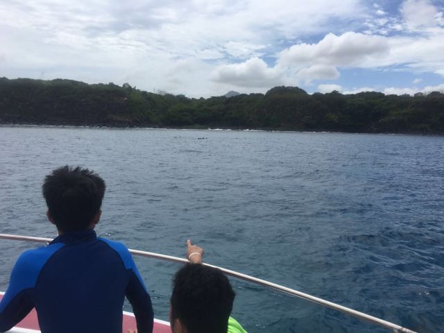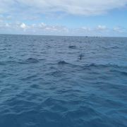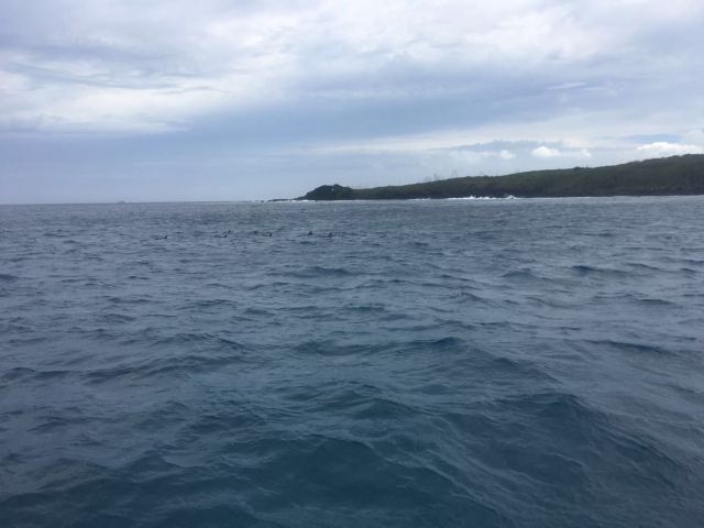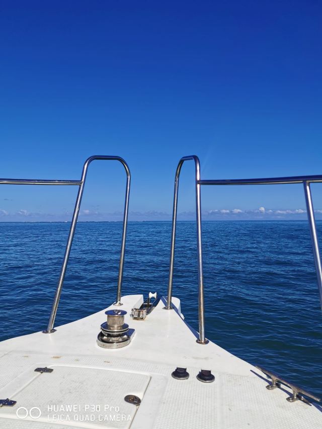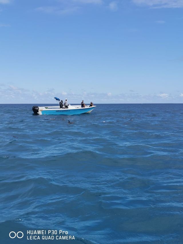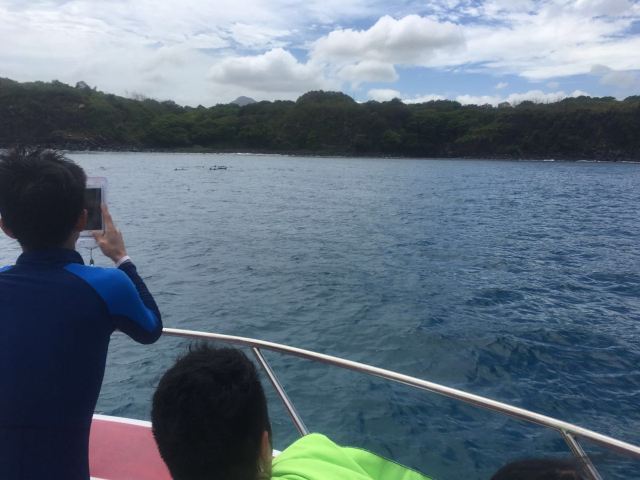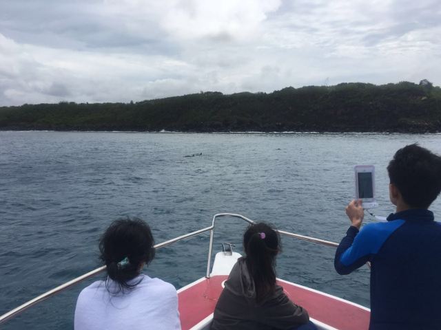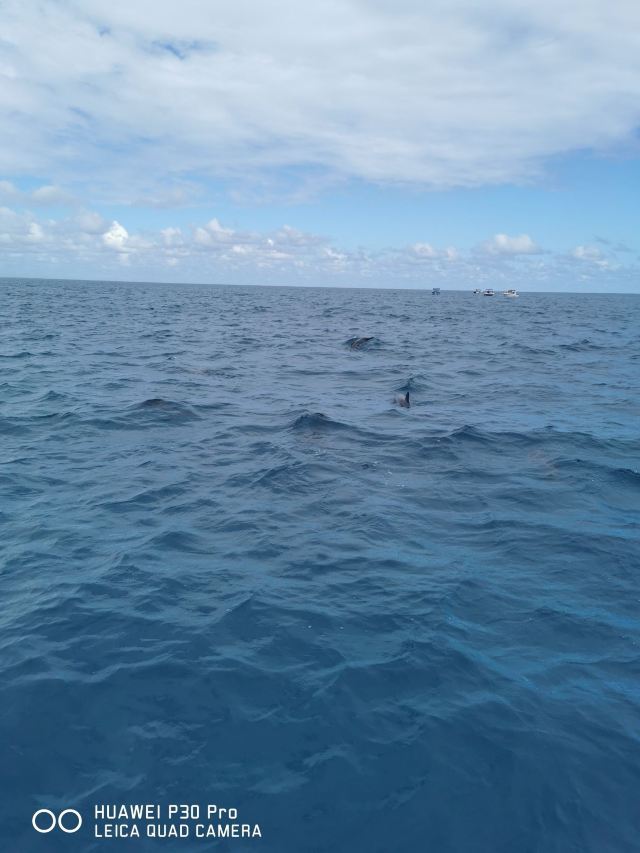 随着快艇离开码头,驶向海中央,此时天气好的话,水面上波光粼粼。船越开越远,海水的颜色由绿变为宝蓝色,直至深蓝色。到了海湾只需等待海豚的出现,一般上午10点以前是海豚捕食阶段,此时来看到海豚的几率在百分之九十以上。