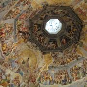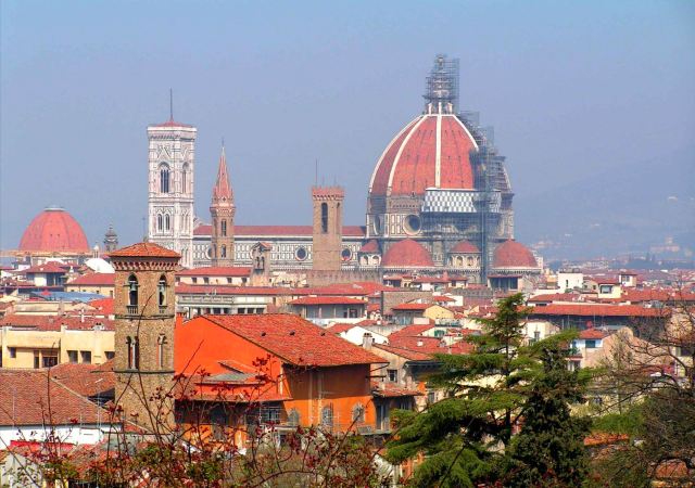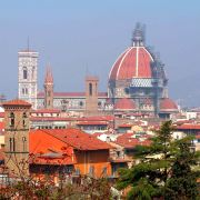 圣母百花大教堂在意大利语中意味花之都,是古老的佛罗伦萨城中一座最显眼的地标,也是佛罗伦萨历史中心被列入世界文化遗产的一部分。古典的外观饰以粉红、鲜绿、奶白等颜色的大理石;教堂砖红色的穹顶,堪称佛罗伦萨的标志,也是古代欧洲的三大穹顶之一;高耸入云的乔托钟楼,哥特式的外形格外显眼而壮观;教堂内部精美的壁画,由多种颜色的马赛克镶嵌而成。