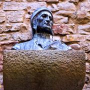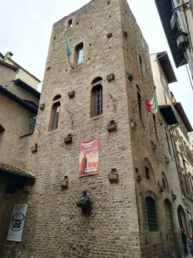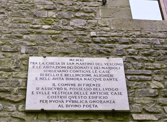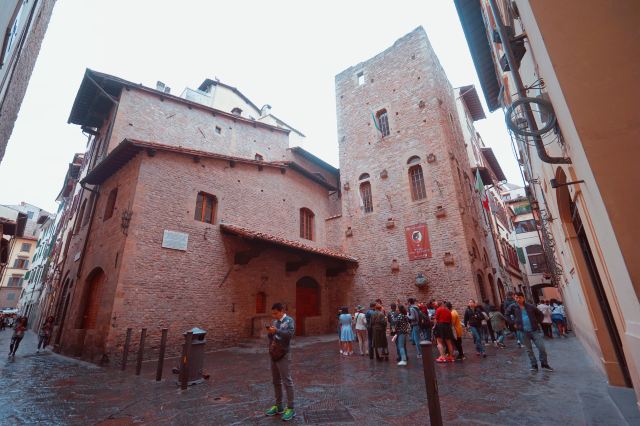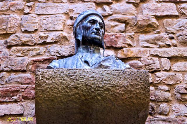 但丁是意大利文艺复兴前叶的伟大诗人,以代表作《神曲》和《新生》闻名于世。其老宅坐落于佛罗伦萨古城的一条小巷中,中世纪塔楼的房屋样子平常,毫不起眼,现已改为博物馆。