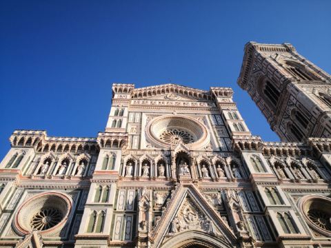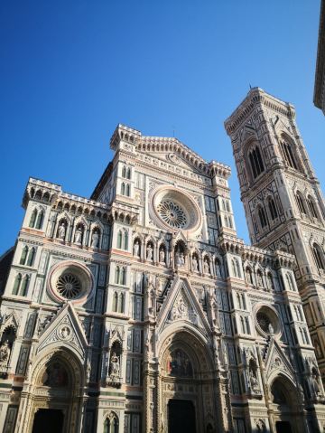主教座堂广场是佛罗伦萨的精神核心和历史中心的灵魂所在,已被联合国教科文组织列为世界文化遗产。在这里,您可以一览城市的主要古迹,感受历史、艺术与美的集中展现,让人目不暇接。广场上矗立着圣母百花大教堂,拥有布鲁内莱斯基设计的圆顶、乔托设计的钟楼以及洗礼堂,周围环绕着历史建筑和大小博物馆。这一切共同构成了佛罗伦萨无与伦比的文化景观。