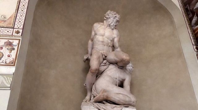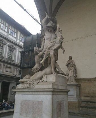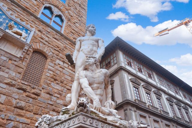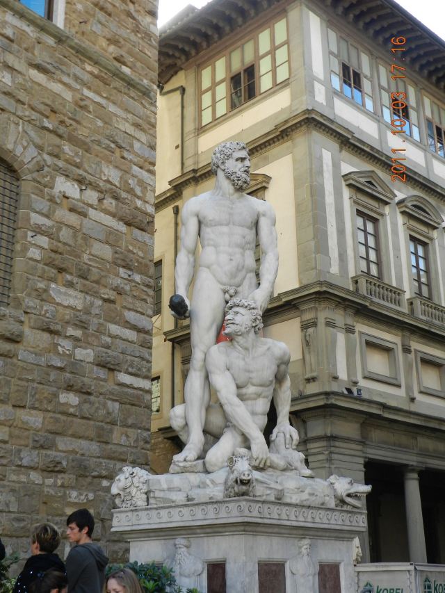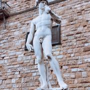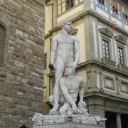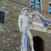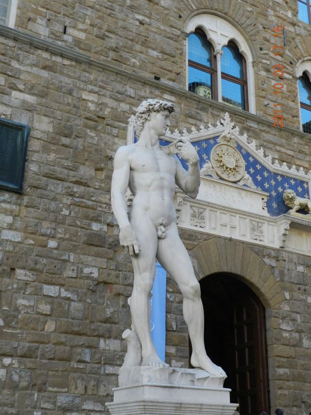 旧宫的门口有一排雕塑,有名的莫过于米开朗基罗的作品《大卫》,不过真迹已经在1873年被移到佛罗伦萨学院美术馆收藏。
