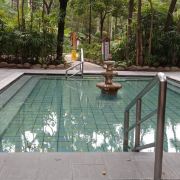 客房楼下就是露天温泉,去泡温泉的话,首先要拿房卡去登记,登记完后,免费发一个手环给我们。原来是免费提供一个储物柜给我们放衣物。贵重物品还可以另外免费寄存,这点酒店做的非常的细心。温泉前台的服务员非常用心的跟我们说在温泉区里面的注意事项。温泉区的环境非常优美,安静,卫生十分干净,服务员也很热情,看到我们在池里泡着主动为我们送水,提醒我们该上岸休息一会喝点水补充水分再泡,还主动为我们送上干净的毛巾。也会问我们水温怎样,各个池的功效,聊会家常话。温泉体验非常舒适