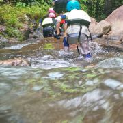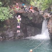 清远溪乐谷溪降位于广东清远佛冈观音山王山寺景区内,作为清远溪降基地,推崇创新的产品理念,致力为游客打造亲近大自然,清凉刺激,挑战自我的快乐体验,被誉为“溪降天花板”更新、更刺激、更专业,可谓是溪降界的天花板!项目设计力求因地制宜,独具一格,除囊括普通溪降具有的瀑布滑降、天然滑梯、攀岩、悬岩跳水等项目外,目前推出了极具创意的丛林飞跃、水上蹦床、悬桥空中跳台等一批网红打卡新玩法。丛林飞跃设计在原始森林和溪谷中将水、陆、空的游玩乐趣完美结合;水上蹦床带领游客将嬉水的乐趣尽情释放,嗨至高潮;独创悬桥空中跳台玩法新颖、惊险刺激!