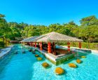 森波拉森林温泉是以火山奇景为背景的主题温泉,集山地温泉和峡谷温泉于一体。森波拉温泉水质温和细腻、无色透明,为偏硅酸弱碱性珍稀氟温泉,从地下约1800米深处花岗岩中涌出,日出水量约2000方,水温常年保持在约45C。