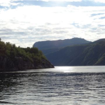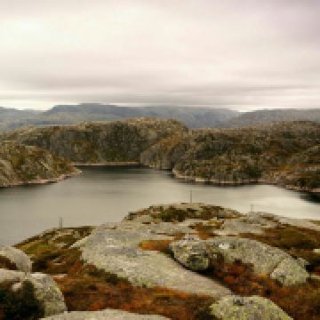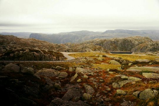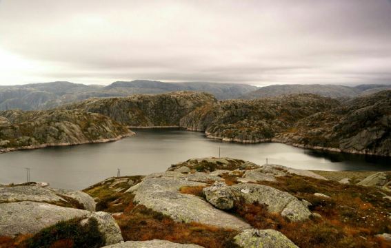 沿大路缓坡徒步,翻过两座小山,垂直上山,到达中段平台,可以欣赏Revsvatnet湖的美景,再爬到山顶。在这块浑然天成的岩石上,尽情领略这个峡湾的风情,起伏的山峦、蜿蜒的峡湾,以及峡湾中星星点点的游船尽收眼底。