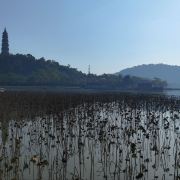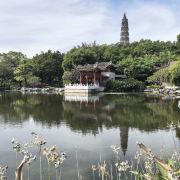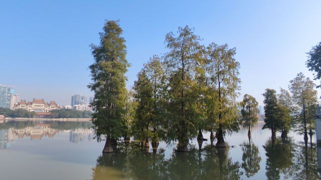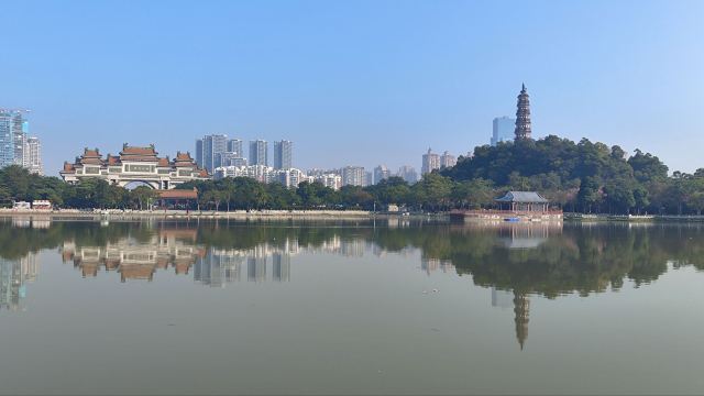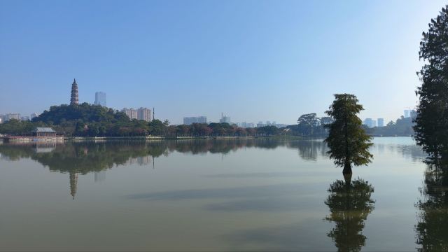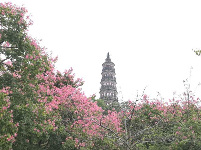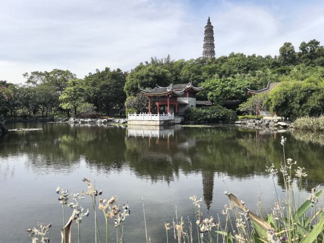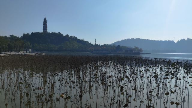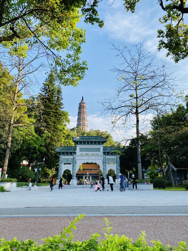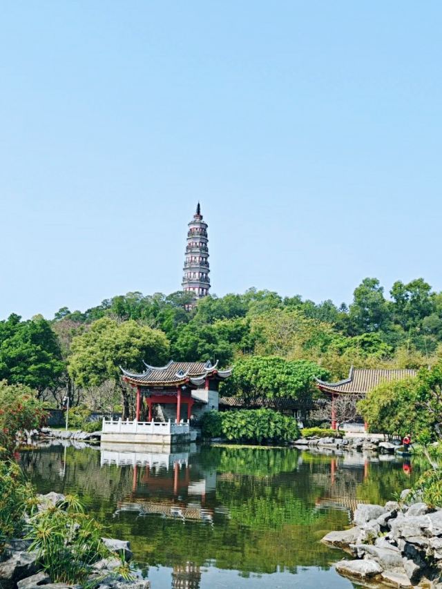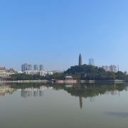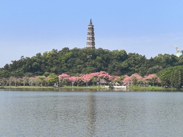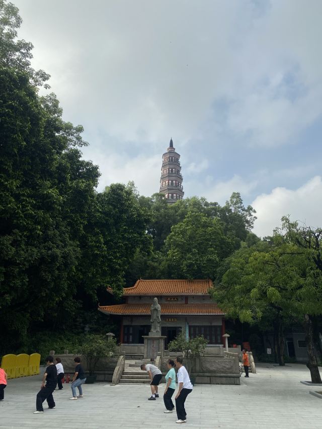 沿着湖边的小路前行,不久便来到了青云塔。这座古塔始建于明代万历壬寅年(1602年),距今已有四百多年历史,是顺德的标志性建筑之一。塔高2.8米,塔身古朴典雅,飞檐翘角,尽显古韵之美。登上青云塔,极目远眺,整个顺德城区的美景尽收眼底。远处的高楼大厦与近处的青山绿水相互映衬,构成了一幅现代与古典交融的美丽画卷。