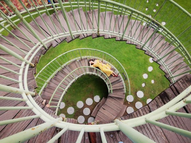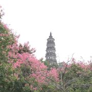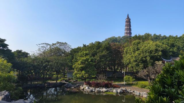 穿过湖边的小道,来到了青云塔下。青云塔高高耸立,古朴典雅,塔身雕刻着精美的花纹。我沿着石阶拾级而上,每登一层,视野便开阔一分。站在塔顶,俯瞰整个公园,绿树、碧水、古塔、小桥,构成了一幅绝美的画卷。