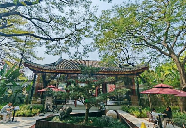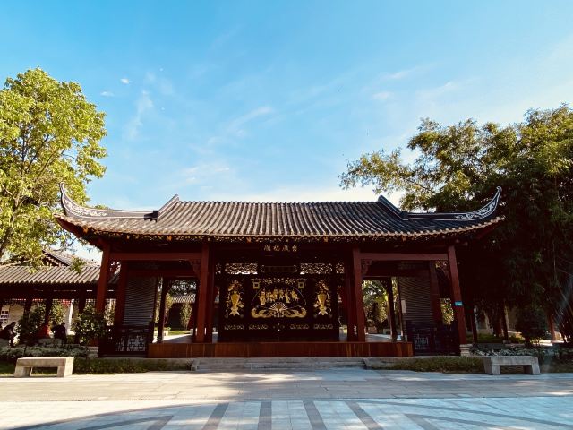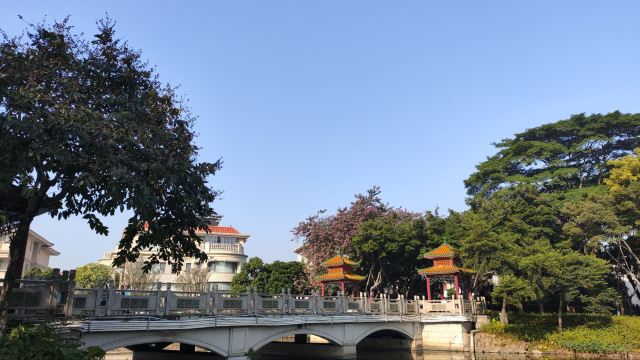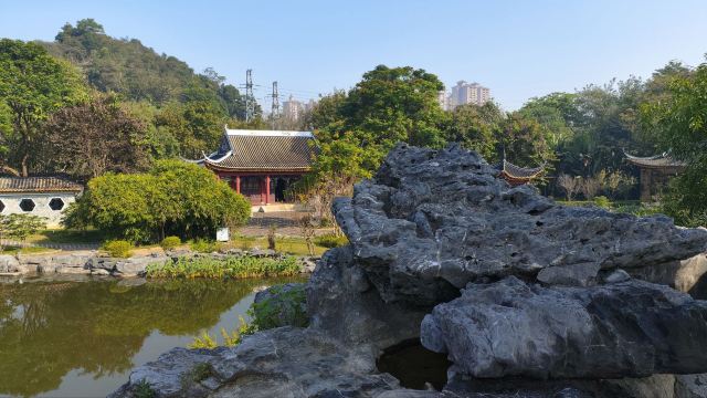 感受古典园林魅力。亭台高就,楼阁依澜,曲廊古榭,木柱梁檐,岭南传统建筑氛围在这里发挥得淋漓尽致。进入牌坊后,游人大多往大路走去,进来这片园林的不多,可以在景物怡人的园林里静品一份韵味。