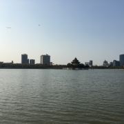古韵与葱绿相映成章。围绕着湖光秀美的青云湖,还有古色古香的青龙阁,天气晴好大家都来这里放风筝!