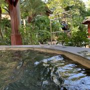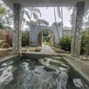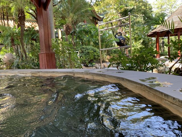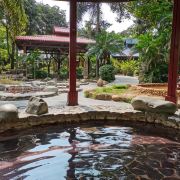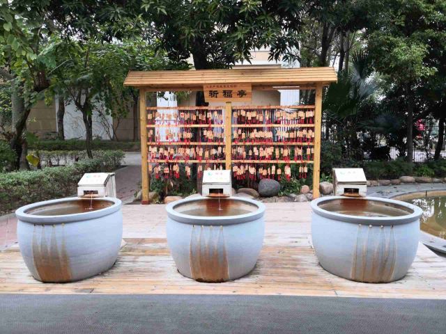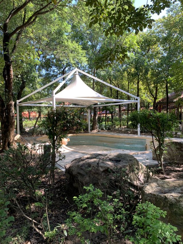 三水温泉区域建有70多个大小不一、功能各异的露天温泉浴池,星罗棋布于园林之中。