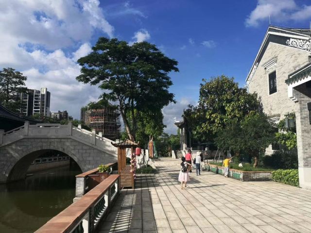 和园,算是顺德这边一个比较新的人工景区吧,整个街道占地面积也还是蛮大的,而且的话,这边是主要打造顺德文化的景观园。