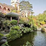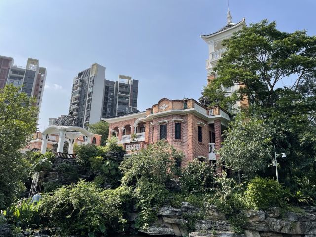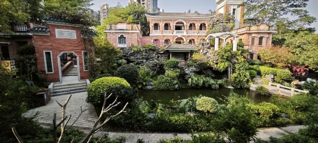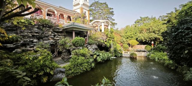 和园最有创意的景观是住于园林一隅的云岫精庐,主体是一座民初风格的红砖别墅,与层层叠叠的英石假山融为一体,是传统园林中没有的景致。