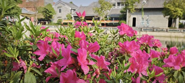 踏入和园,映入眼帘的是古雅的镬耳墙。在四月暖阳的轻抚下,这些镬耳墙错落有致,青瓦泛着温润的光,仿佛在诉说着岭南的悠悠往事。沿着蜿蜒的小径前行,路旁的三角梅肆意绽放,红的似火,粉的如霞,给古朴的园子添了一抹明艳活泼的色彩。