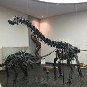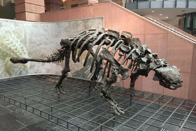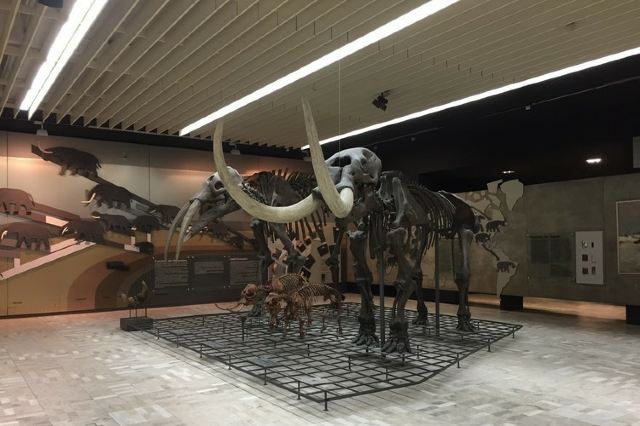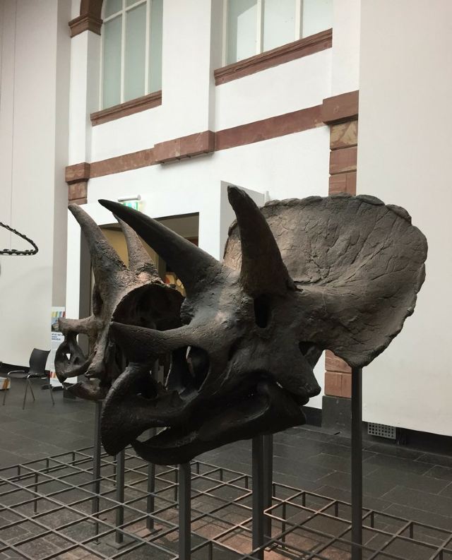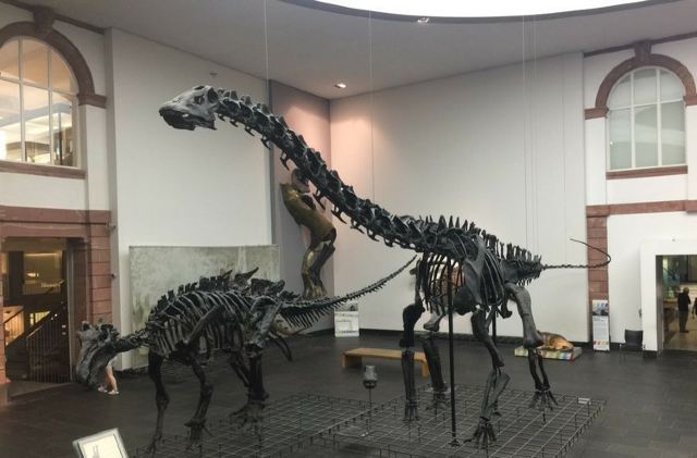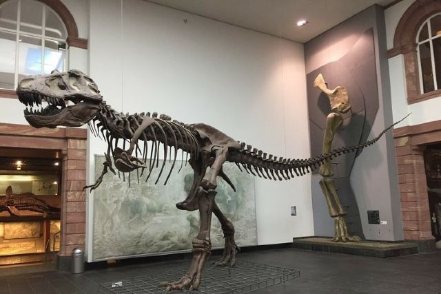 在博物馆前的广场上,摆放着两个真实大小的仿真恐龙,让参观者还没步入博物馆就开始了探索自然的时空之旅。