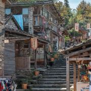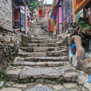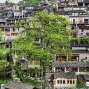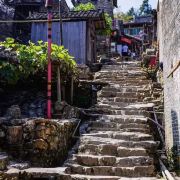 3.建筑风貌:瑶寨房屋依山而建,层层叠叠.错落有致,青石板路纵横交错,展现了独特的建筑风貌。