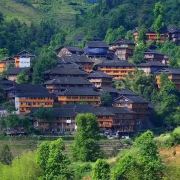 1.地理位置与规模:瑶寨坐落在百里瑶山之中,海拔808米,面积159亩,始建于宋代,已有一千多年历史。