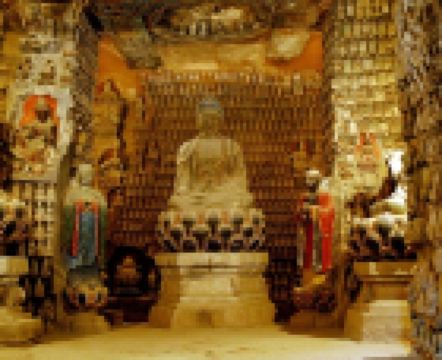 石泓寺石窟又称川子河石窟,位于延安市富县城西65公里直罗镇川子河北岸。石窟始建于隋代大业年间(605年~617年),唐、宋、元、明历代断断续续建造了一千余年,然后建成石如刀切,分布于东西长约70米、一字排列的大小七个洞窟。主洞前有木结构三开间二层楼房。楼前接寺院,院门正上方雕刻有“石泓寺”匾额。