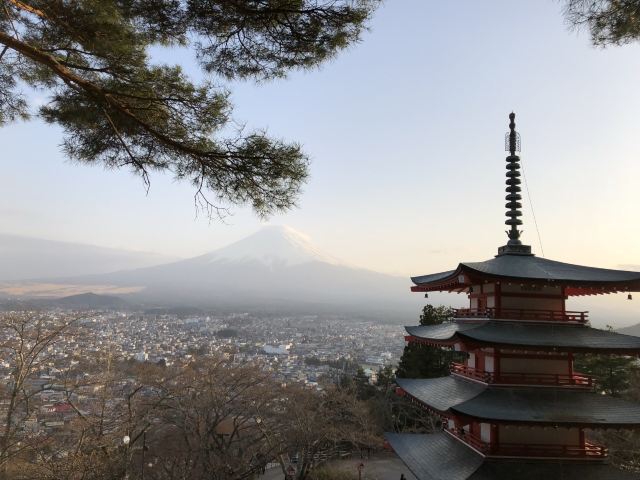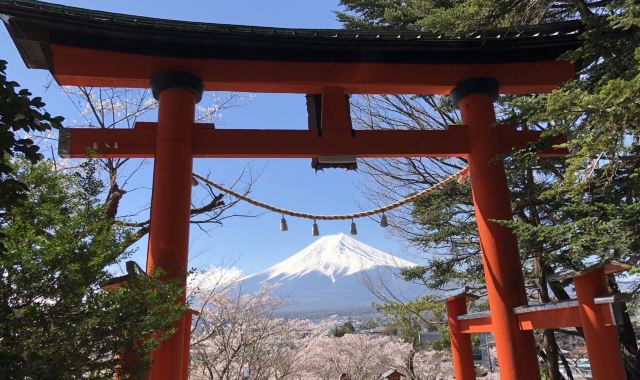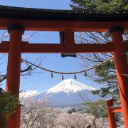 新仓山浅间公园位于新仓山的中部,是一处以美丽的富士山远景而闻名的公园,同时也是一个赏樱胜地。每到春季,公园开满了染井吉野樱花。园内矗立的五重塔、富士山与满园怒放的樱花,可谓是典型的日本美景。这里被评为“全世界摄影师一定要去的21个地方”之一,世界各国的摄影师和游客为了观赏这幅景致纷至沓来。其实不仅是春天,这里秋天的红叶景致和冬天的雪景也非常漂亮。除了欣赏富士山的绝景,还可以俯瞰极富魅力的富士吉田市内的街景。