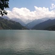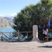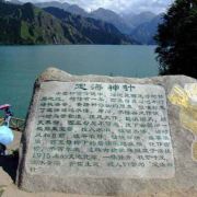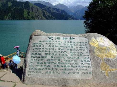 2、“天池”的名字最早见于清乾隆四十八年(1783年)乌鲁木齐第三任都统、乾隆帝的侄女婿明亮的题记《灵山天池统凿水渠碑记》,清代每年春季和秋季会各进行1次对“博格达山”的祭祀。先秦古籍《穆天子传》中记述,公元前989年,西周第五位君主、我国典籍记载下的首位旅行家周穆王姬满从国都镐京出发周游北方,曾在天池湖畔与西王母对歌,并互换礼物,故天池也称瑶池。天池附近曾经有很多寺庙和道观,目前仅剩这3座:西王母庙、福寿观、灵山寺。