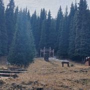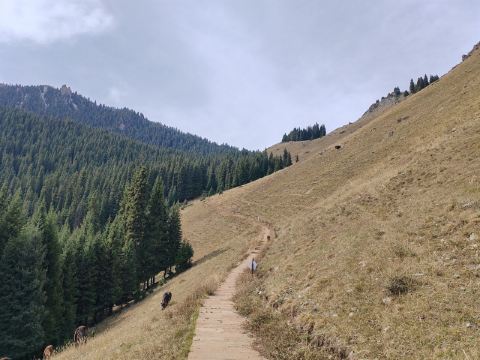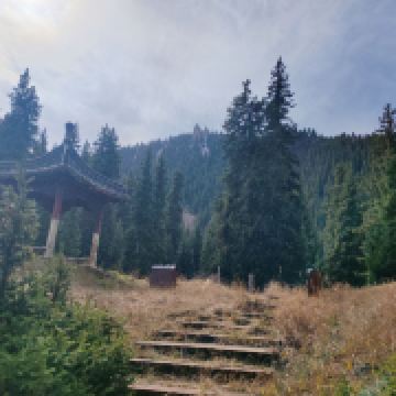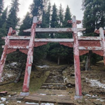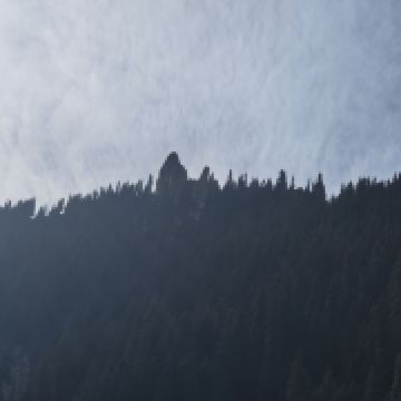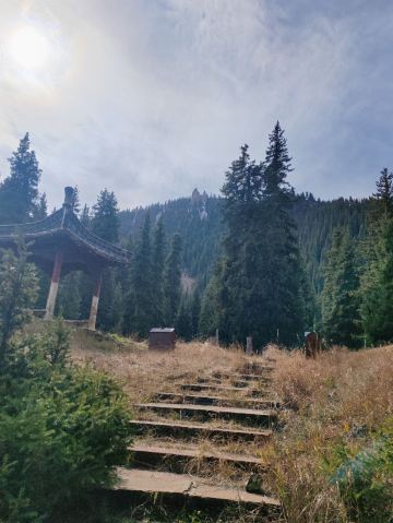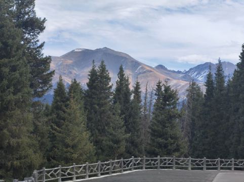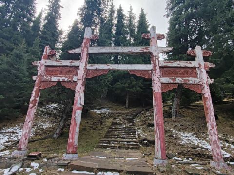 灯杆山距天池西岸4公里,于层峦峡谷中突兀崛起。主峰海拔2718米,顶峰耸立着3块巨大的石笋,其状如戟,直刺长空,又称“顶天三石”。神话传说是王母娘娘降妖伏魔的绣花鞋化生。这里是天池观落日和欣赏古冰川地貌的绝好去处。