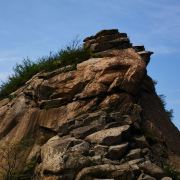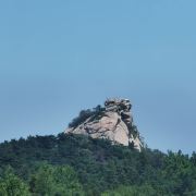 鸡公山十景之一,清晨可以看到晓峰朝晖的盛景。这里有鸡公山标志性的鸡公石头,在蓝天的掩映下雄伟逼真。