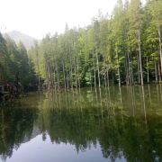 距离顶峰不远的一大片水域,清澈开阔。端午假期虽然看不到“月湖秋夕”的景象,但在攀登累了,群山之间的湖水旁悠然小憩一番也是不错的选择。