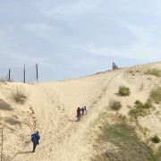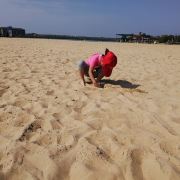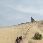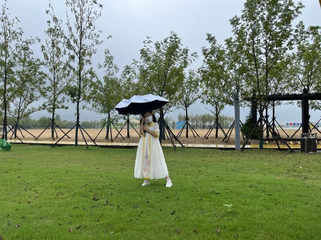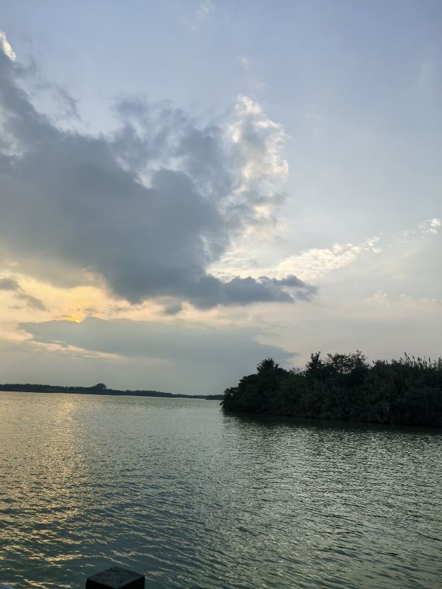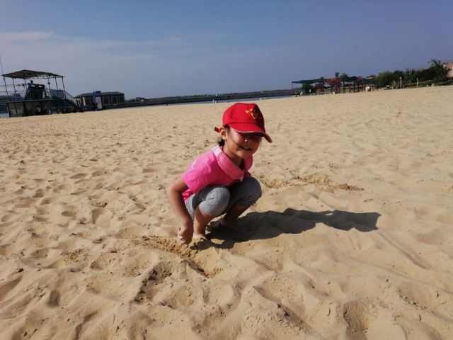 刚去阜宁金沙湖了,放平身子,躺在一处沙丘的高处,枕着双手,然后把腿用力埋进沙里,又暖又湿;或者捧起细沙,让它轻轻地流过膝盖,那种轻柔会熨平你心头那任何一丁点的烦恼!
