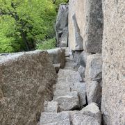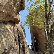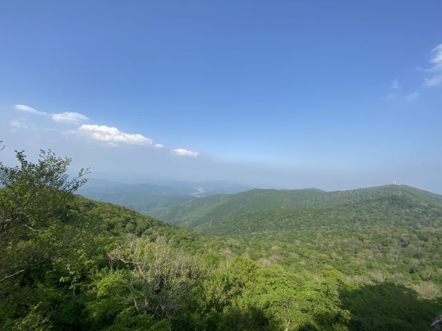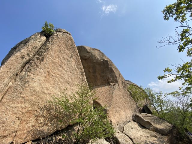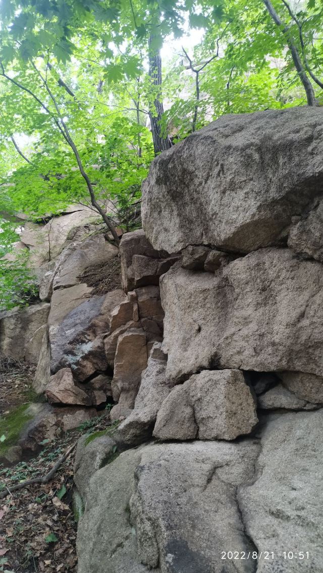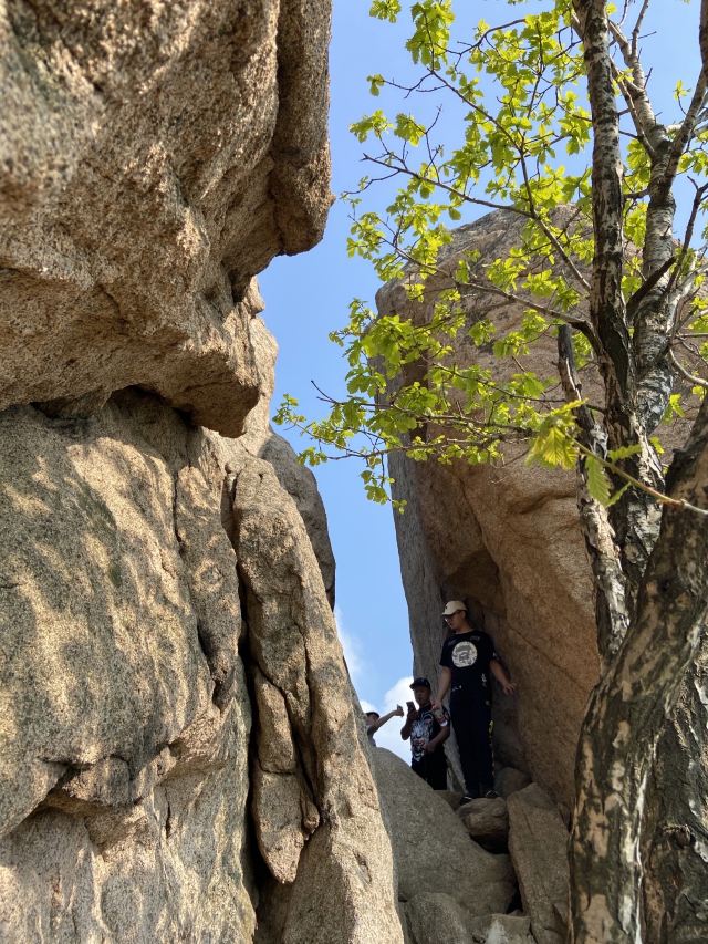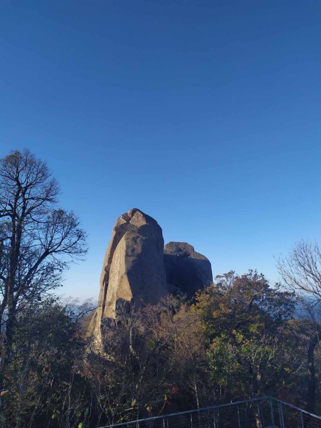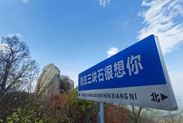 从园区走到山脚下,要5km,走走停停,大概走了一个半小时。从山脚爬山到下山,要3个半小时,山路几乎都是楼梯,特别累,带着60岁的爸妈爬,他们也很累,但是可以爬到山顶。三块石是可以爬上去的,比较陡,不好爬,在石头上可以俯瞰周边山林全貌。