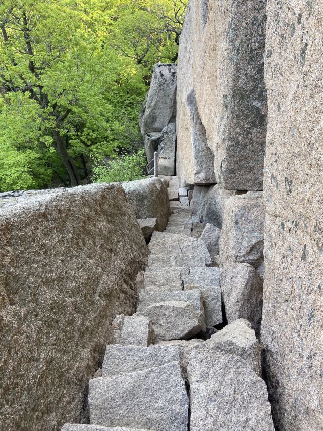 5分 超棒坐摆渡车10元,14:00从小偏桥上山2580米(不要小瞧这区区不算远的距离),全部是石头台阶,登顶三块石拍照留念后极速下撤,16:46分到达登山口,可摆渡车已经下班,整个景区里只有我一个人。上下山太累了,两条腿抽筋,膝盖很疼,还要拖着沉重的步伐徒步五公里远回停车场。景区内没有路灯,摸黑回停车场,树林中各种小动物来回跳跃的声音伴随一路,胆量小的人,估计得吓哭。
