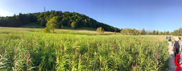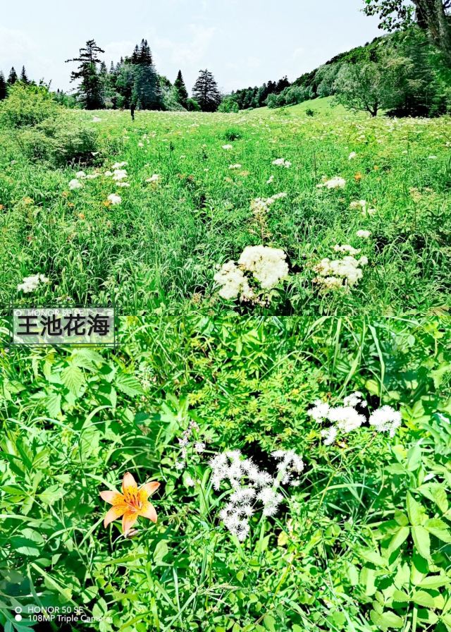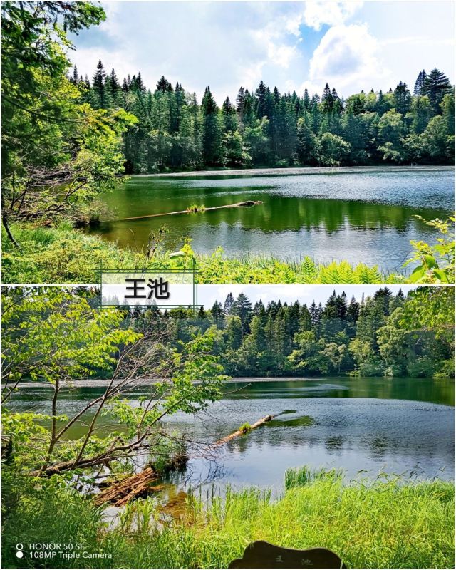 3、王池在景区直通车从换乘中心返回集散中心的路上,去的乘客此站下车,换乘小型摆渡车前往王池入口;不去的便直接回到江河镇上的集散中心了。王池又名“岳桦池”、“小王池”,位于海拔1850米高得冷杉林中,面积1.4万平方米,玲珑秀气、树影碧翠,平均水深3米,无鱼,据传是清太祖努尔哈赤在长白山挖人参时病倒后喝了此池池水后痊愈,他统一东北后重回故地,为其命名为王池。下摆渡车后步行20分钟到达王池,王池的颜值一般,有的地方水比较浑浊,绕一圈10分钟,然后原路返回,沿途花海的颜值更高一些,注意不要下木栈道,丛林中有蛇出没。
