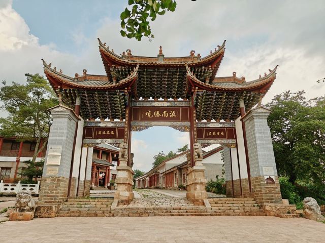 界坊系三门十二楹柱的木构牌坊,高14.8米,面阔14.5米,始建于明景泰四年,后经多次修葺,留存至今。于1987年公布为云南省文物保护单位。