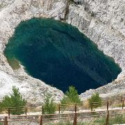 “新疆阿勒泰可可托海三号坑景点”深100多米,长宽数百米,坑内有76种矿共生。其规模之大,矿种之多,品位之高,成带性之分明,在国外非常罕见,蕴藏着有锂、铍、铖、钼、铪、铀、钍等多种稀有及放射性元素。可可托海矿藏非常丰富,其中具有代表性的当属三号矿脉。三号矿脉蕴藏着稀有金属铍、锂、钽、铌等;有色金属铜、镍、铅、锌、钨、锰、铋、锡等;黑色金属铁等;非金属矿物云母、长石、石英、重晶石、兰晶石、石灰石、煤、盐、碱等;珠宝石矿海兰石、紫罗兰、石榴子石、芙蓉石等共86种矿物,占人类已知有用矿物种类的百分之60左右,而且各种矿物呈十分规则的螺旋带状分布,分布界线非常分明。其中令人惊喜的是这是一个草帽型矿,在矿坑四周仍有大量未被挖掘的资源。