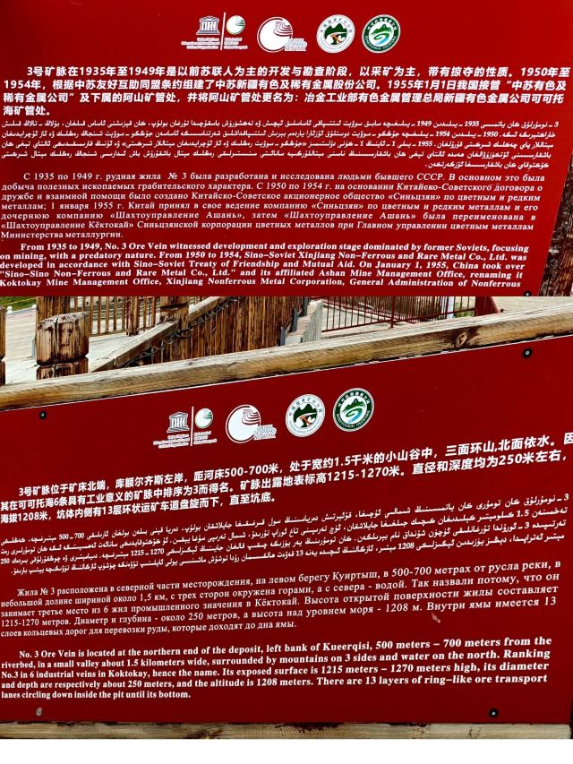 这个景区是两部分组成。户外的巨大的矿坑,在那个年代先辈们纯人工挖掘开采,采出的矿石还外债,十分伟大了不起了。还有一部分是是山里的矿洞,这个矿洞共有80余种矿,世界上绝无仅有了,其他的据说每个矿能同时有五种矿以上就十分了不起了。这也是为什么一个矿能还那么多外债的原因。山洞里有些凉,要注意保暖。能看到各种五彩斑斓的石英等矿石宝石,墙壁上地面上还能捡一些漂亮的矿石。比想象中或者照片上看上去要漂亮有趣。景区价格不贵,路过的朋友还是值得推荐进入的。就在可可托海镇子边,离可可托海景区也就几分钟车程。ps,景区有一个讲解员,谭先生?解说十分生动,慷慨激昂。如果能碰到他,可以听听他的讲解。
