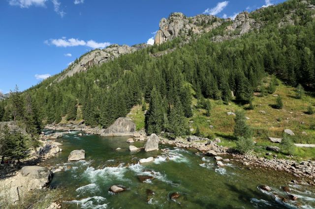 山峰中尤以相对高差365米的阿米尔萨拉峰令人叫绝,可谓一山一景一世界,一步一景一回眸。峰回水转,额尔齐斯河从峡谷深处发源,奔流西去,或蜿蜒和缓,或奔流不息,声色各异,变化多端,河水矿物元素含量丰富,“送子河”名扬千里。冷泉、温泉相拥而出,胃泉、降压泉神秘莫测,“美人汤”著称的季兰德温泉令人流连忘返。
